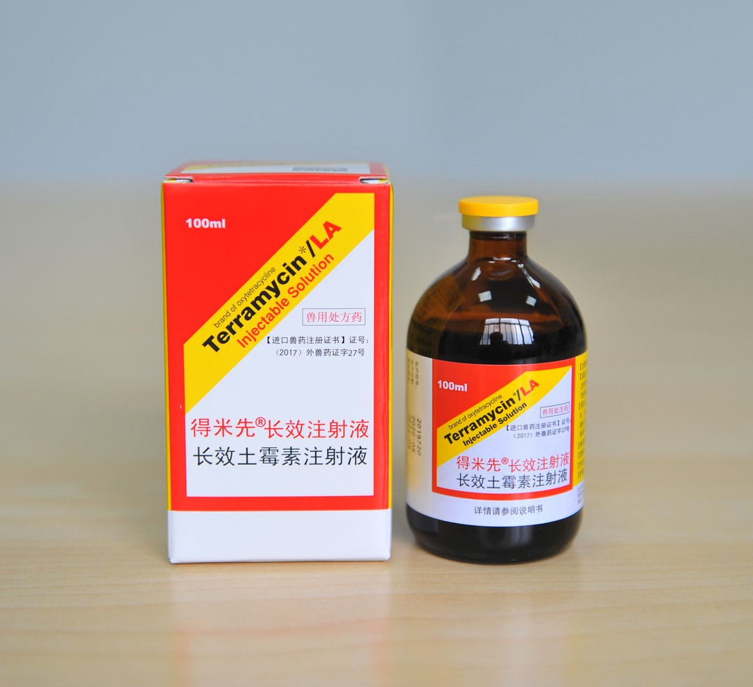 【用法與用量】 以土霉素計。肌內(nèi)注射:一次量,每1kg體重,牛、羊、豬10mg~20mg(相當(dāng)于本品0.05ml~0.1ml)。牛每個注射位點的注射體積不能超過10ml,羊和豬每個注射位點的注射體積不能超過5ml。