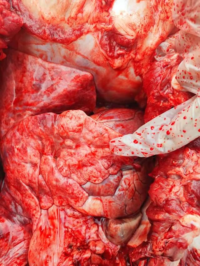解剖主要是肺部病變,表現(xiàn)為尖葉有肉變,氣管內(nèi)有炎性泡沫,水腫,肝脾腎感官比較正常,沒有出血白點(diǎn)腫大的情況,嚴(yán)重的咳血死亡,器官內(nèi)都要血凝塊